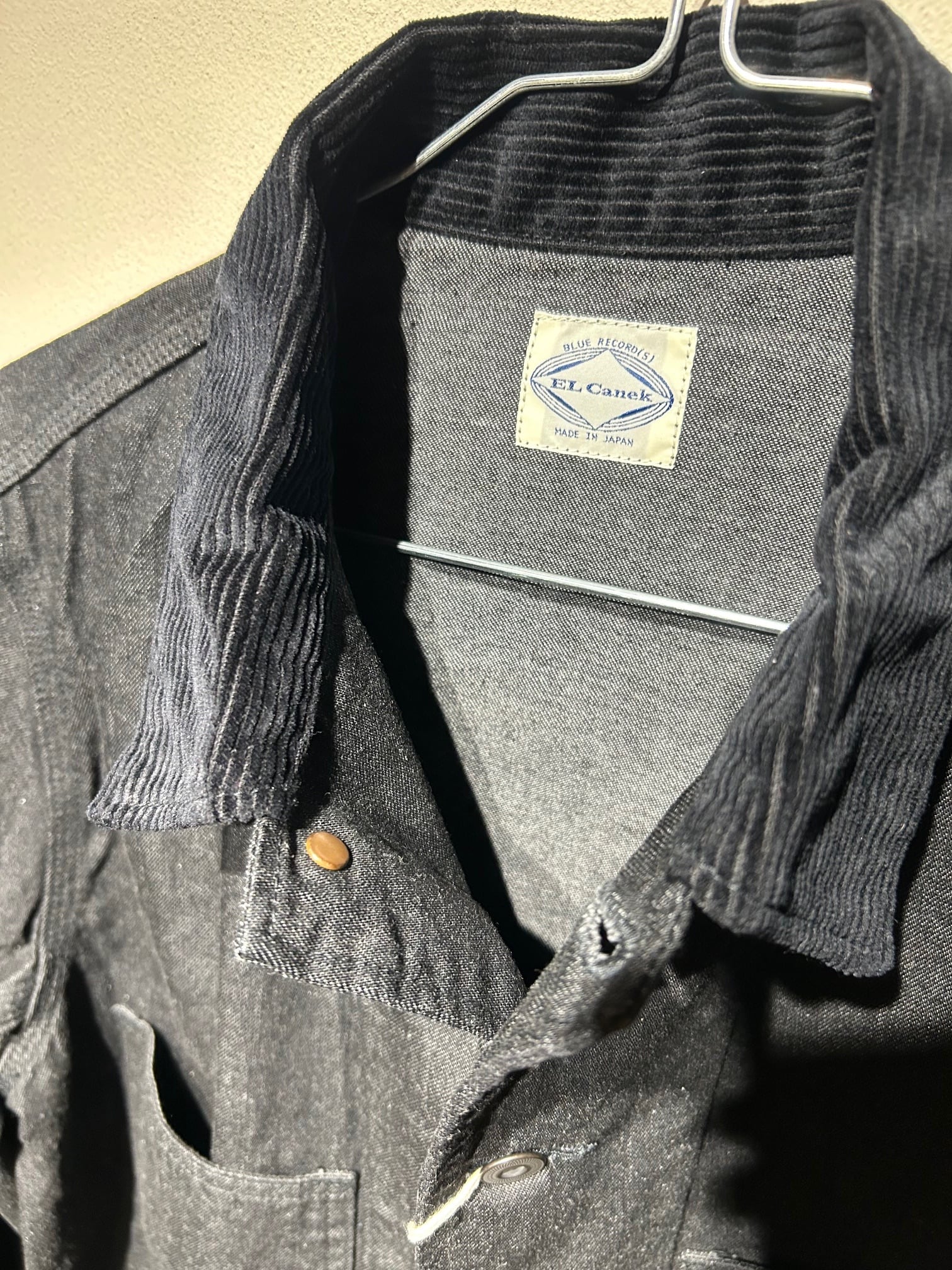 襟と袖口の裏側がコーデュロイの切り替えになってます。